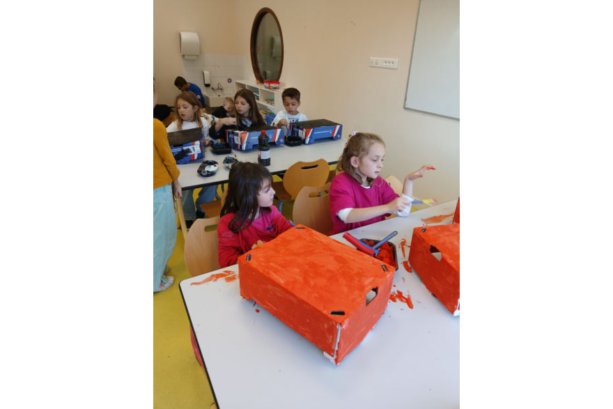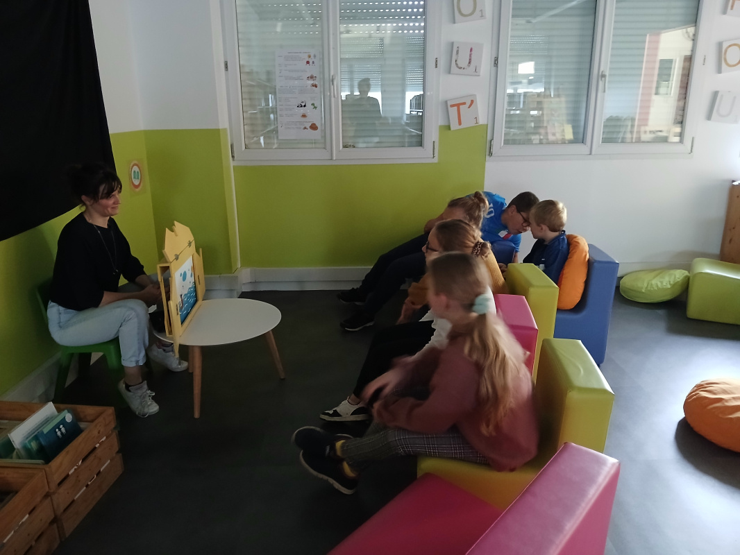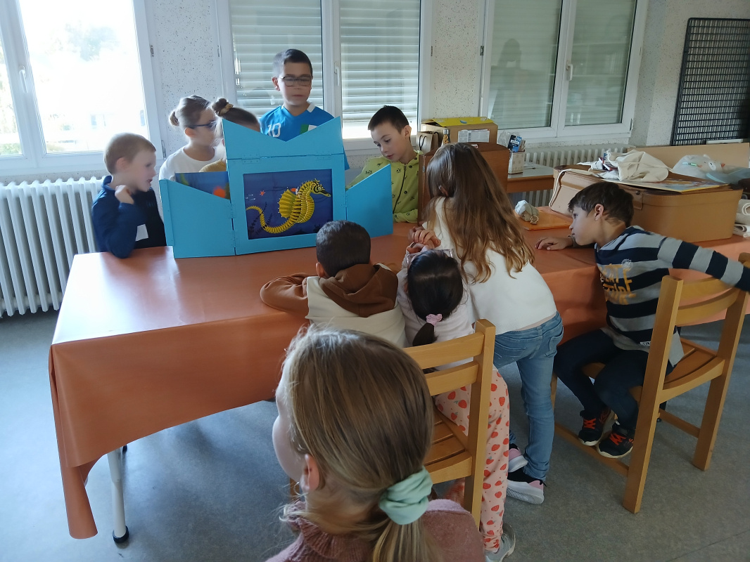 - durant les vacances d'automne : en collaboration avec Anne Laure et Pierrette de la mediathèque les enfants ont appris à utiliser un kamishibai, participer à la décoration de la mediathèque (avec nos marionnettes) et ont assisté à un spectacle (dans le cadre du festival puppazzi)